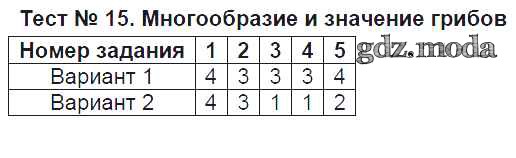 ГДЗ решение к заданию № Тест №15. Многообразие и значение грибов Биология 5 класс Тесты Богданов Н.А. (к уч. Пономаревой) Экзамен 2017 ФГОС бесплатно на гдз.мода!