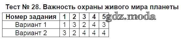 ГДЗ решение к заданию № Тест №28. Важность охраны живого мира планеты Биология 5 класс Тесты Богданов Н.А. (к уч. Пономаревой) Экзамен 2017 ФГОС бесплатно на гдз.мода!
