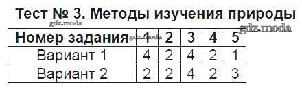 ОТВЕТ на задание № Тест №3. Методы изучения природы Тесты по Биологии 5 класс Богданов УМК
