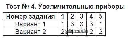 ОТВЕТ на задание № Тест №4. Увеличительные приборы Тесты по Биологии 5 класс Богданов УМК