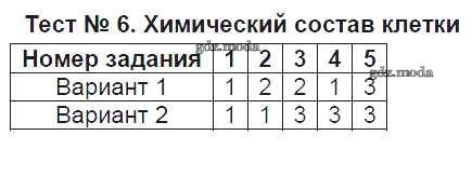 ГДЗ решение к заданию № Тест №6. Химический состав клетки Биология 5 класс Тесты Богданов Н.А. (к уч. Пономаревой) Экзамен 2017 ФГОС бесплатно на гдз.мода!