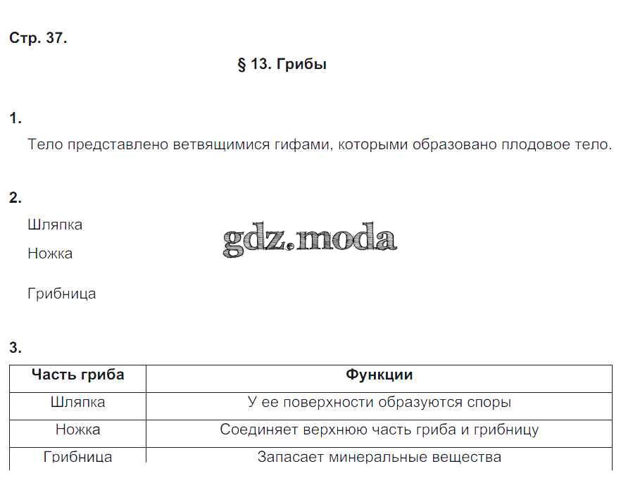 ГДЗ решение к заданию № 37 Биология 5 класс рабочая тетрадь Корнилова О.А. Вентана-граф 2020 ФГОС бесплатно на гдз.мода!