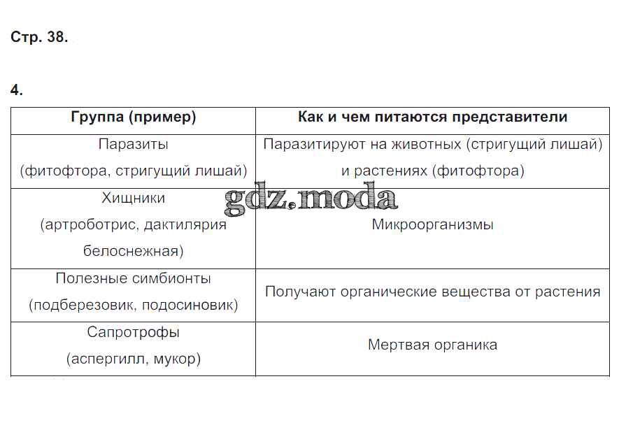 ГДЗ решение к заданию № 38 Биология 5 класс рабочая тетрадь Корнилова О.А. Вентана-граф 2020 ФГОС бесплатно на гдз.мода!