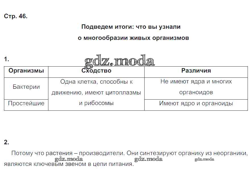 ГДЗ решение к заданию № 46 Биология 5 класс рабочая тетрадь Корнилова О.А. Вентана-граф 2020 ФГОС бесплатно на гдз.мода!