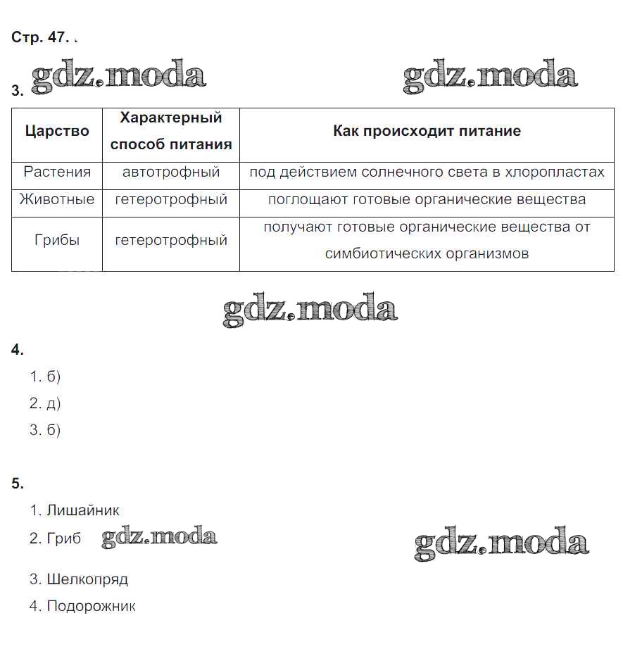 ГДЗ решение к заданию № 47 Биология 5 класс рабочая тетрадь Корнилова О.А. Вентана-граф 2020 ФГОС бесплатно на гдз.мода!