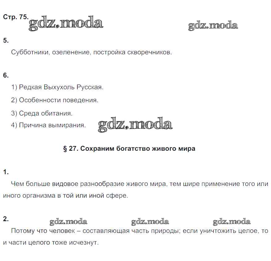ГДЗ решение к заданию № 75 Биология 5 класс рабочая тетрадь Корнилова О.А. Вентана-граф 2020 ФГОС бесплатно на гдз.мода!