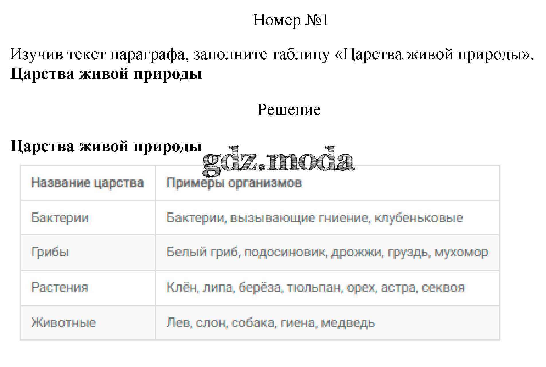 ГДЗ решение к заданию № 1 Биология 5 класс рабочая тетрадь Пасечник В.В. Просвещение, Просвещение 2015, 2020 ФГОС бесплатно на гдз.мода!