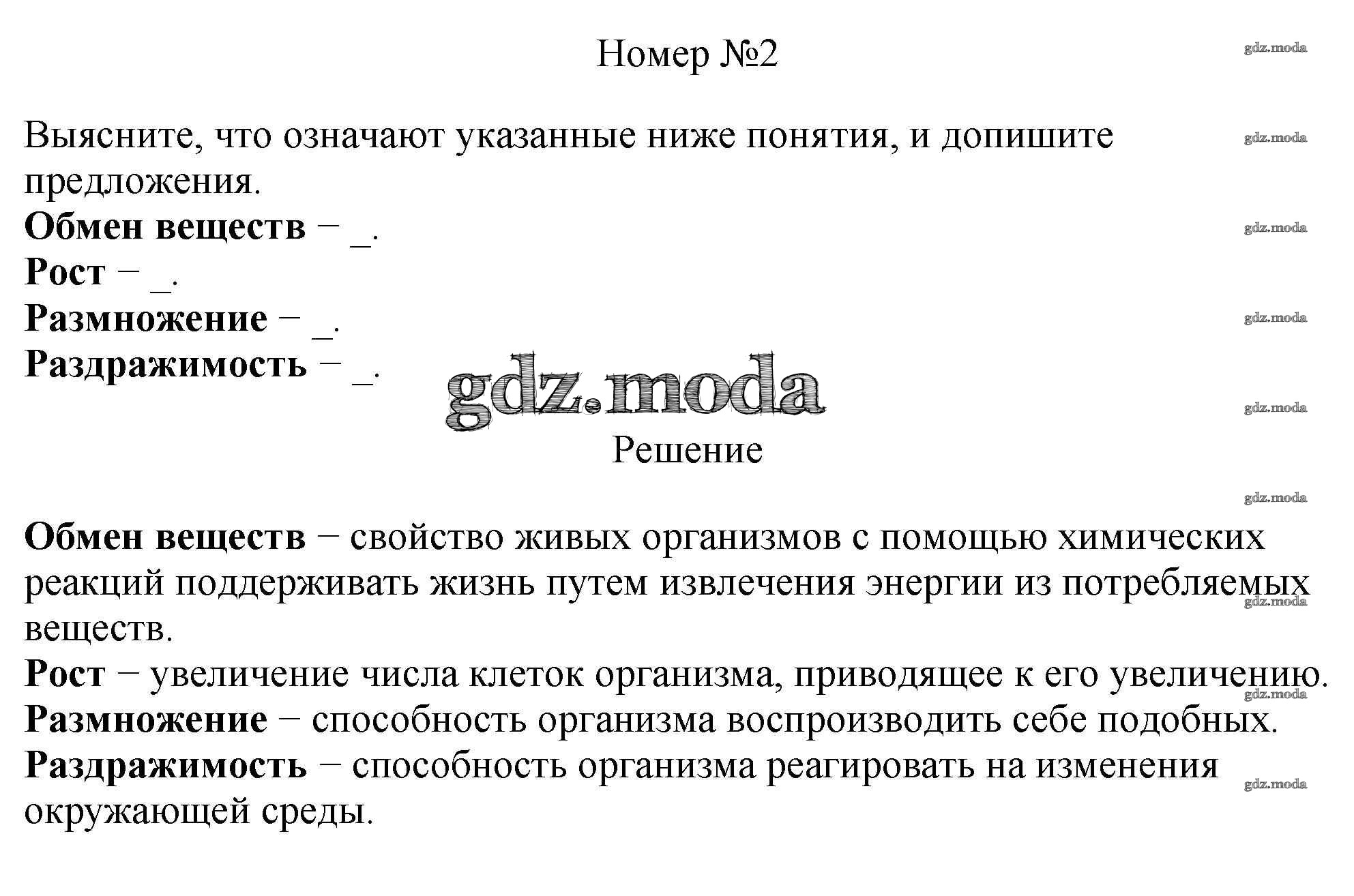 ГДЗ решение к заданию № 2 Биология 5 класс рабочая тетрадь Пасечник В.В. Просвещение, Просвещение 2015, 2020 ФГОС бесплатно на гдз.мода!