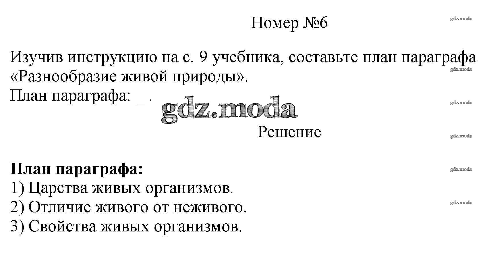ГДЗ решение к заданию № 6 Биология 5 класс рабочая тетрадь Пасечник В.В. Просвещение, Просвещение 2015, 2020 ФГОС бесплатно на гдз.мода!