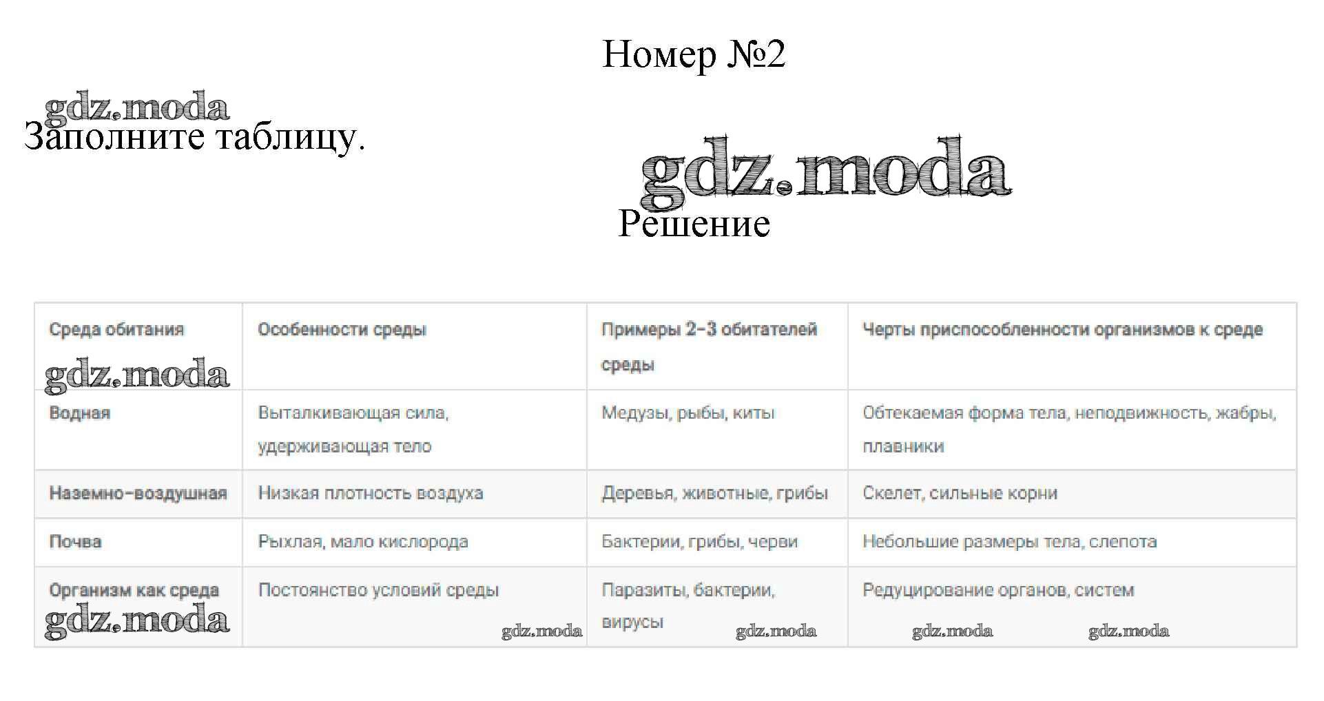 ГДЗ решение к заданию № 2 Биология 5 класс рабочая тетрадь Пасечник В.В. Просвещение, Просвещение 2015, 2020 ФГОС бесплатно на гдз.мода!