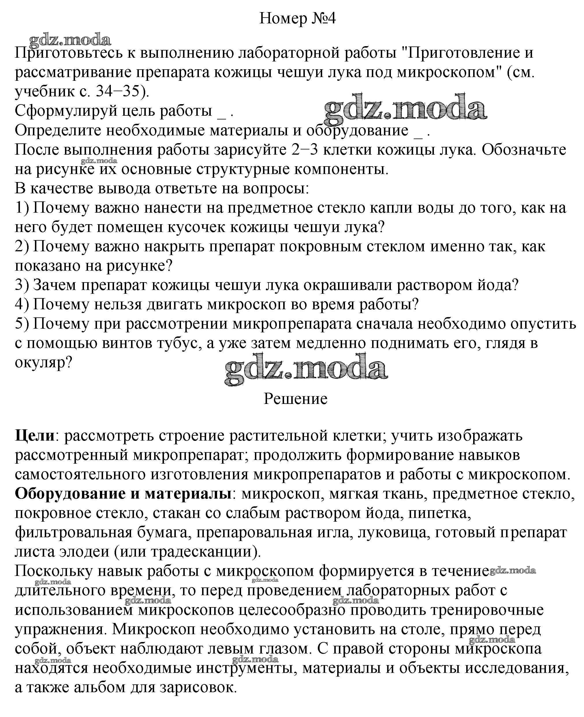 ГДЗ решение к заданию № 4 Биология 5 класс рабочая тетрадь Пасечник В.В. Просвещение, Просвещение 2015, 2020 ФГОС бесплатно на гдз.мода!