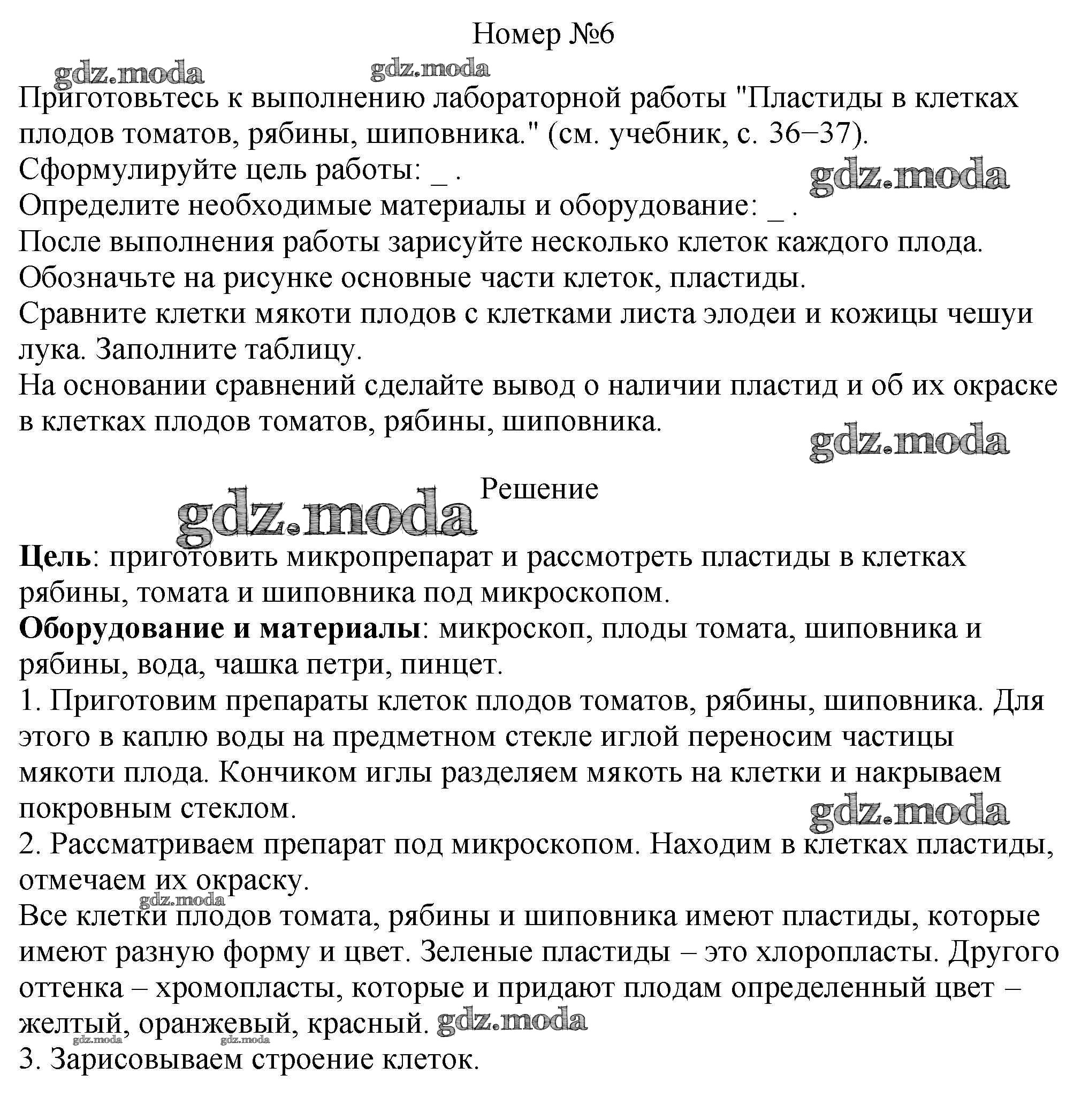 ГДЗ решение к заданию № 6 Биология 5 класс рабочая тетрадь Пасечник В.В. Просвещение, Просвещение 2015, 2020 ФГОС бесплатно на гдз.мода!