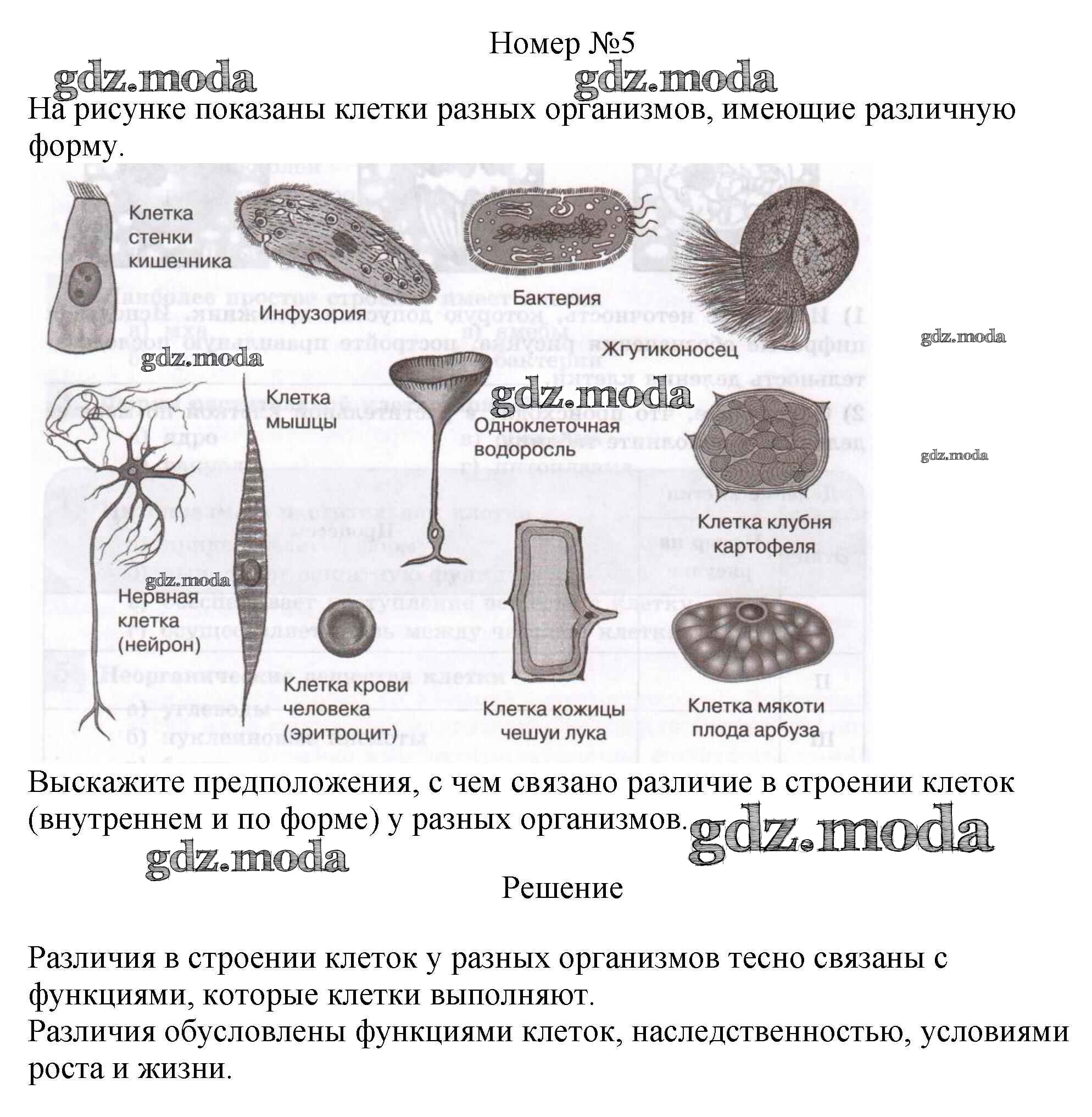 ГДЗ решение к заданию № 5 Биология 5 класс рабочая тетрадь Пасечник В.В. Просвещение, Просвещение 2015, 2020 ФГОС бесплатно на гдз.мода!