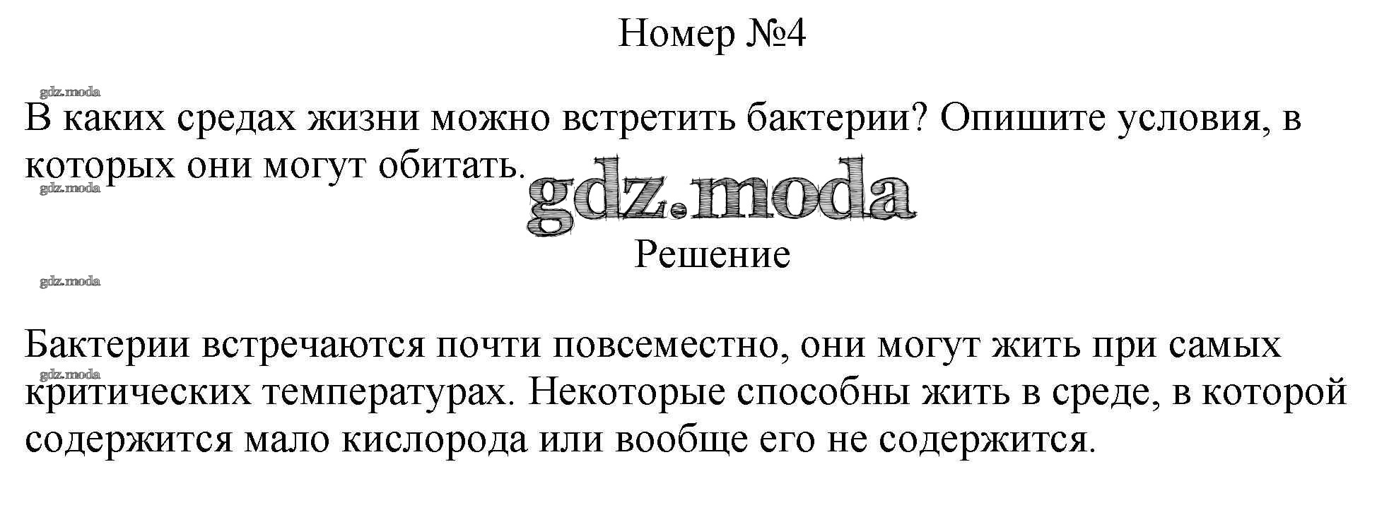ГДЗ решение к заданию № 4 Биология 5 класс рабочая тетрадь Пасечник В.В. Просвещение, Просвещение 2015, 2020 ФГОС бесплатно на гдз.мода!