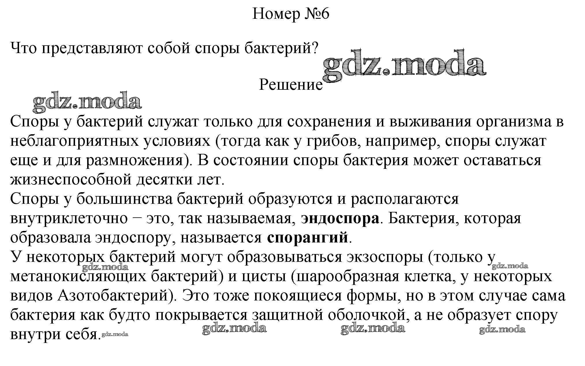 ГДЗ решение к заданию № 6 Биология 5 класс рабочая тетрадь Пасечник В.В. Просвещение, Просвещение 2015, 2020 ФГОС бесплатно на гдз.мода!