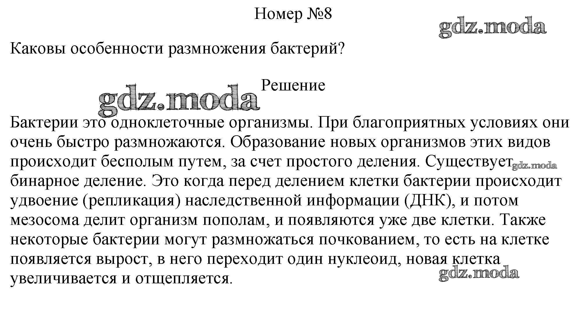 ГДЗ решение к заданию № 8 Биология 5 класс рабочая тетрадь Пасечник В.В. Просвещение, Просвещение 2015, 2020 ФГОС бесплатно на гдз.мода!