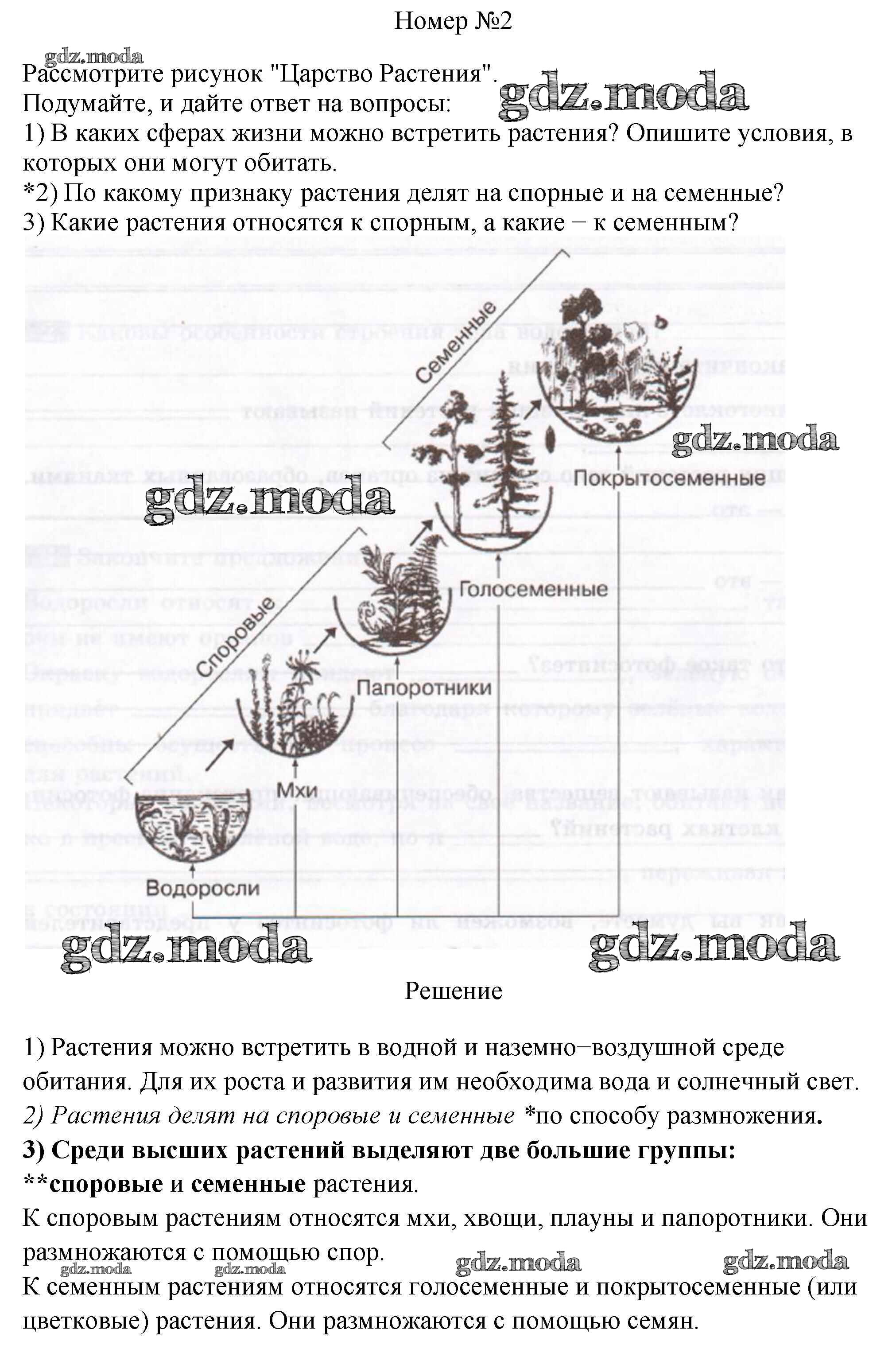 ГДЗ решение к заданию № 2 Биология 5 класс рабочая тетрадь Пасечник В.В. Просвещение, Просвещение 2015, 2020 ФГОС бесплатно на гдз.мода!