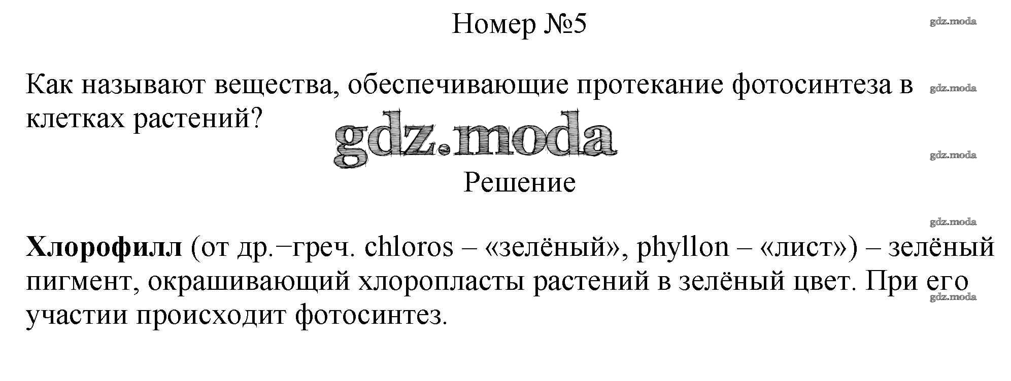 ГДЗ решение к заданию № 5 Биология 5 класс рабочая тетрадь Пасечник В.В. Просвещение, Просвещение 2015, 2020 ФГОС бесплатно на гдз.мода!
