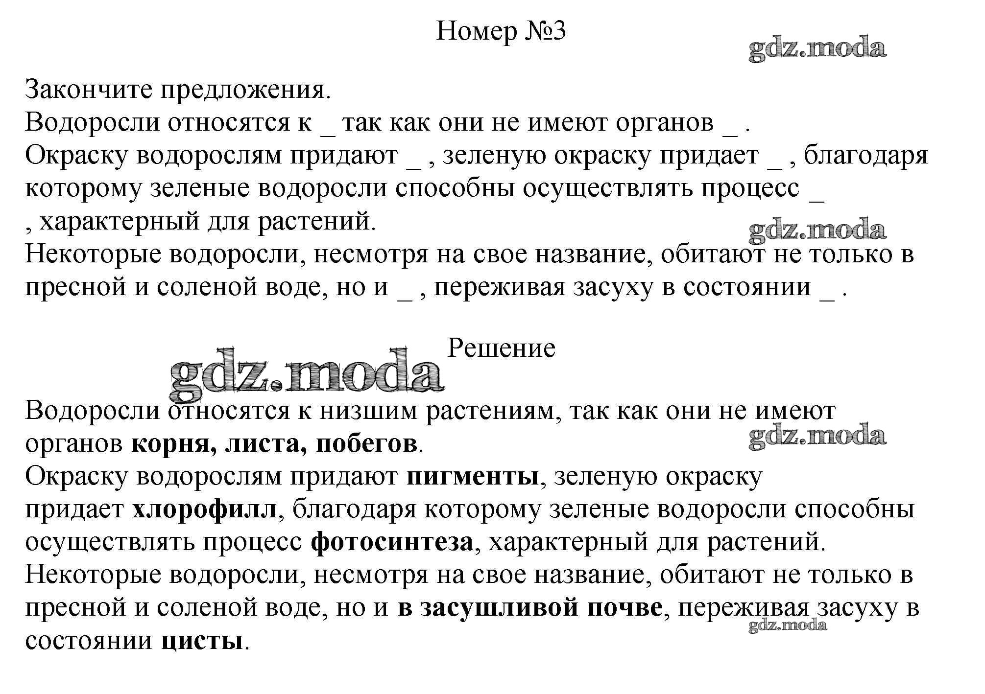 ГДЗ решение к заданию № 3 Биология 5 класс рабочая тетрадь Пасечник В.В. Просвещение, Просвещение 2015, 2020 ФГОС бесплатно на гдз.мода!