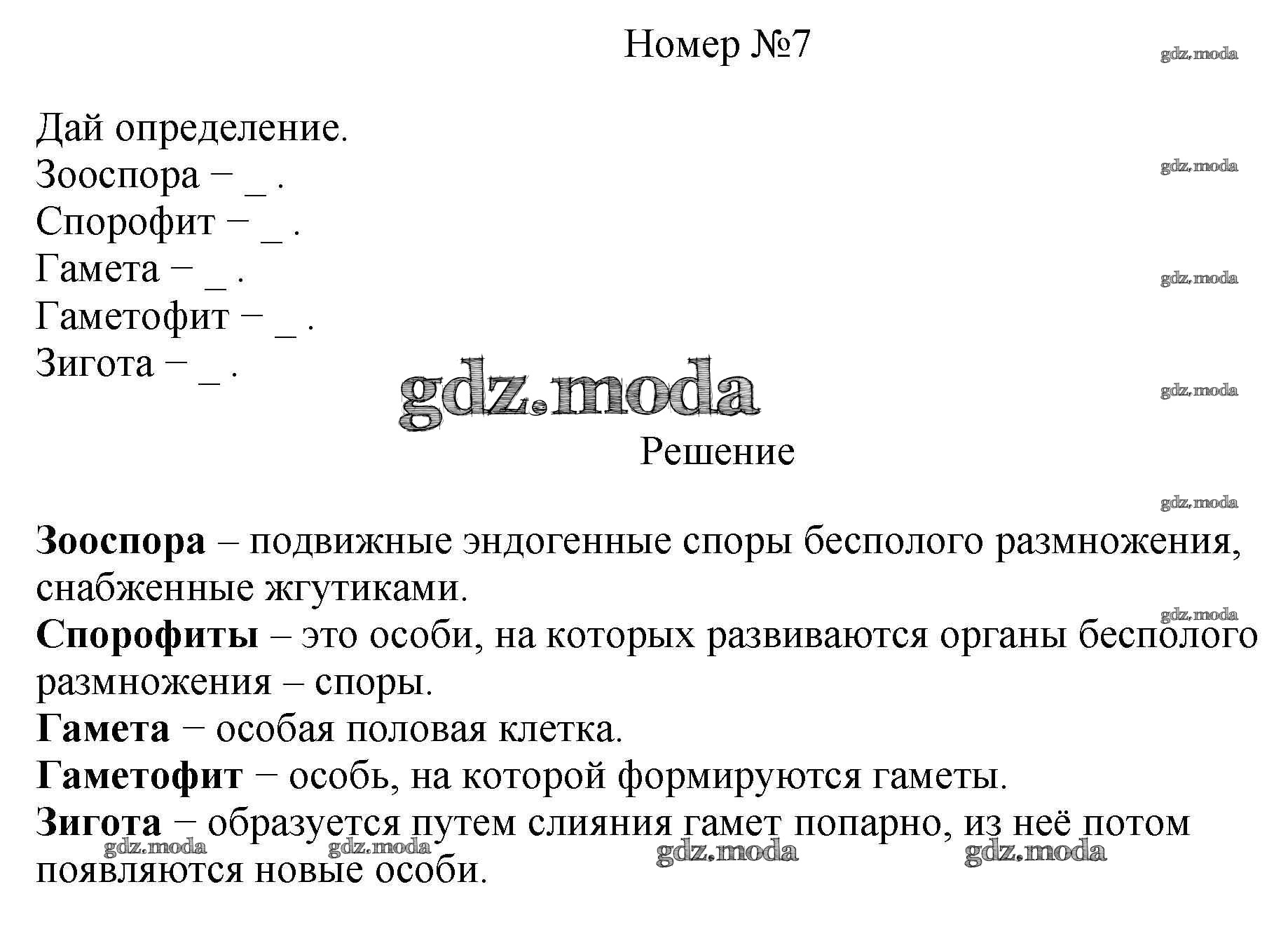 ГДЗ решение к заданию № 7 Биология 5 класс рабочая тетрадь Пасечник В.В. Просвещение, Просвещение 2015, 2020 ФГОС бесплатно на гдз.мода!