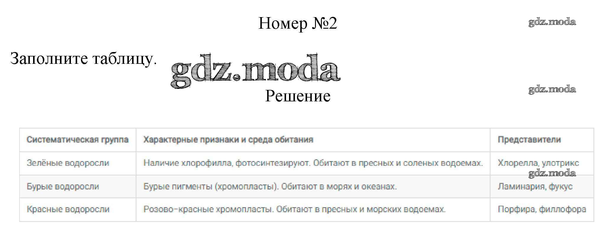 ГДЗ решение к заданию № 2 Биология 5 класс рабочая тетрадь Пасечник В.В. Просвещение, Просвещение 2015, 2020 ФГОС бесплатно на гдз.мода!