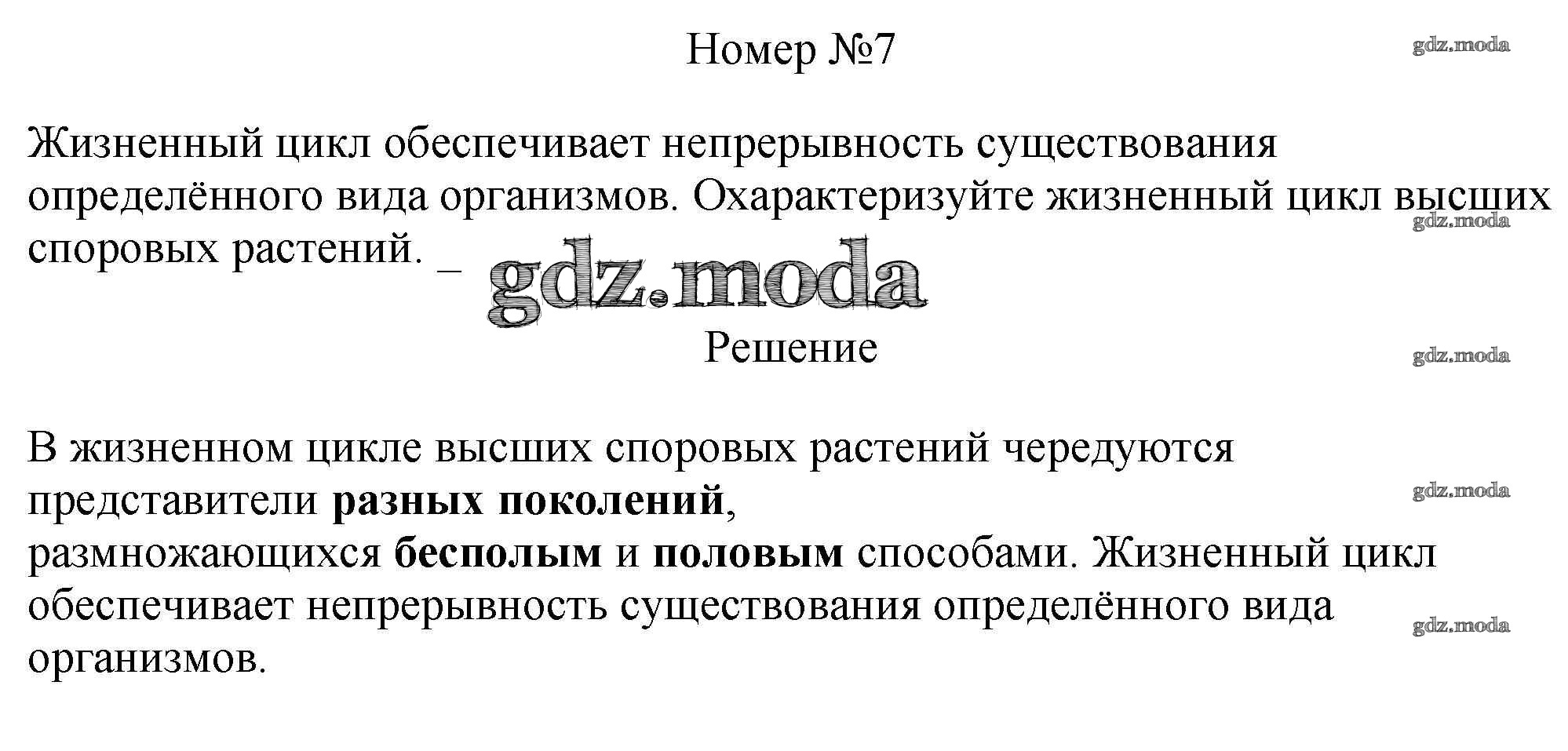ГДЗ решение к заданию № 7 Биология 5 класс рабочая тетрадь Пасечник В.В. Просвещение, Просвещение 2015, 2020 ФГОС бесплатно на гдз.мода!
