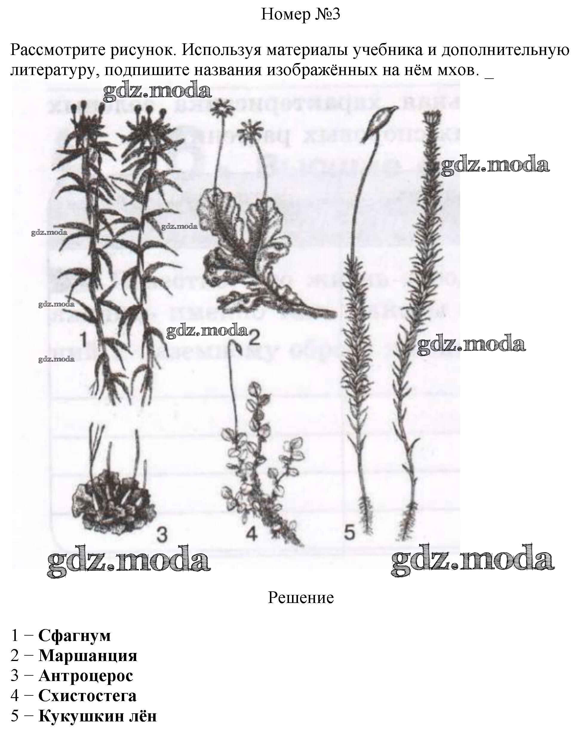 ГДЗ решение к заданию № 3 Биология 5 класс рабочая тетрадь Пасечник В.В. Просвещение, Просвещение 2015, 2020 ФГОС бесплатно на гдз.мода!