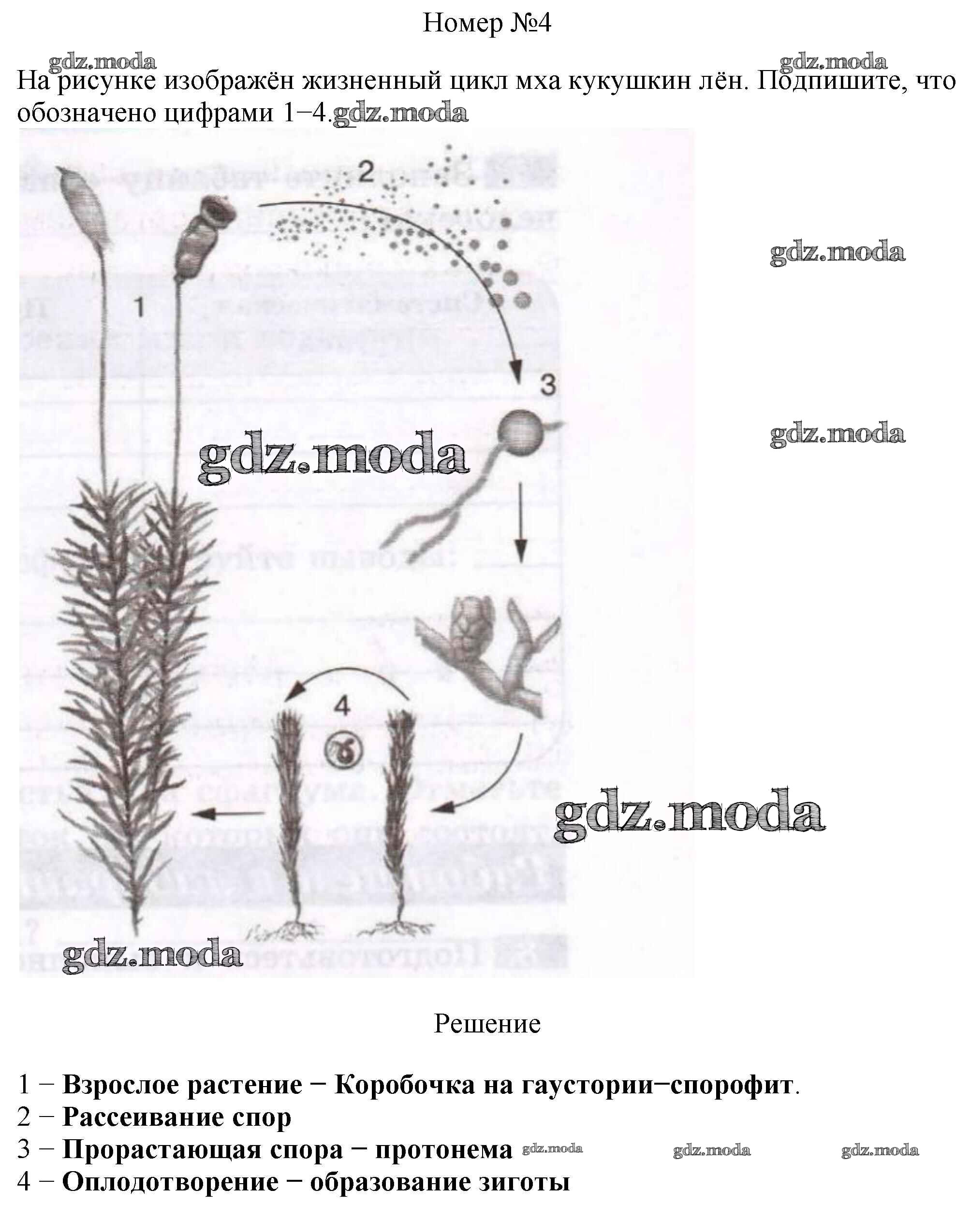 ГДЗ решение к заданию № 4 Биология 5 класс рабочая тетрадь Пасечник В.В. Просвещение, Просвещение 2015, 2020 ФГОС бесплатно на гдз.мода!