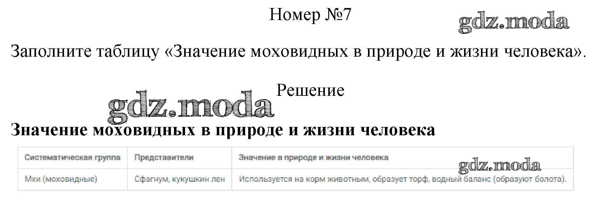 ГДЗ решение к заданию № 7 Биология 5 класс рабочая тетрадь Пасечник В.В. Просвещение, Просвещение 2015, 2020 ФГОС бесплатно на гдз.мода!