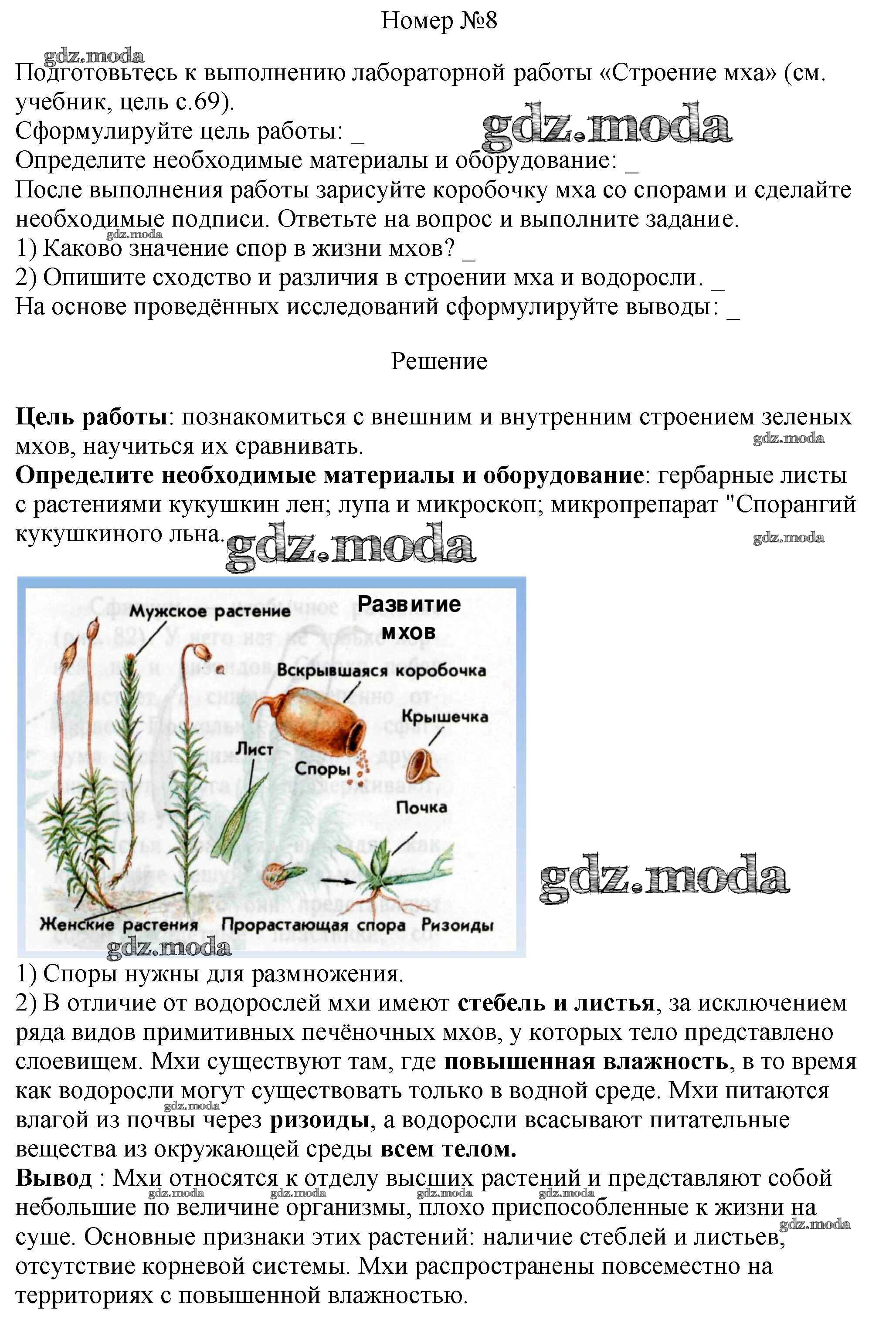 ГДЗ решение к заданию № 8 Биология 5 класс рабочая тетрадь Пасечник В.В. Просвещение, Просвещение 2015, 2020 ФГОС бесплатно на гдз.мода!