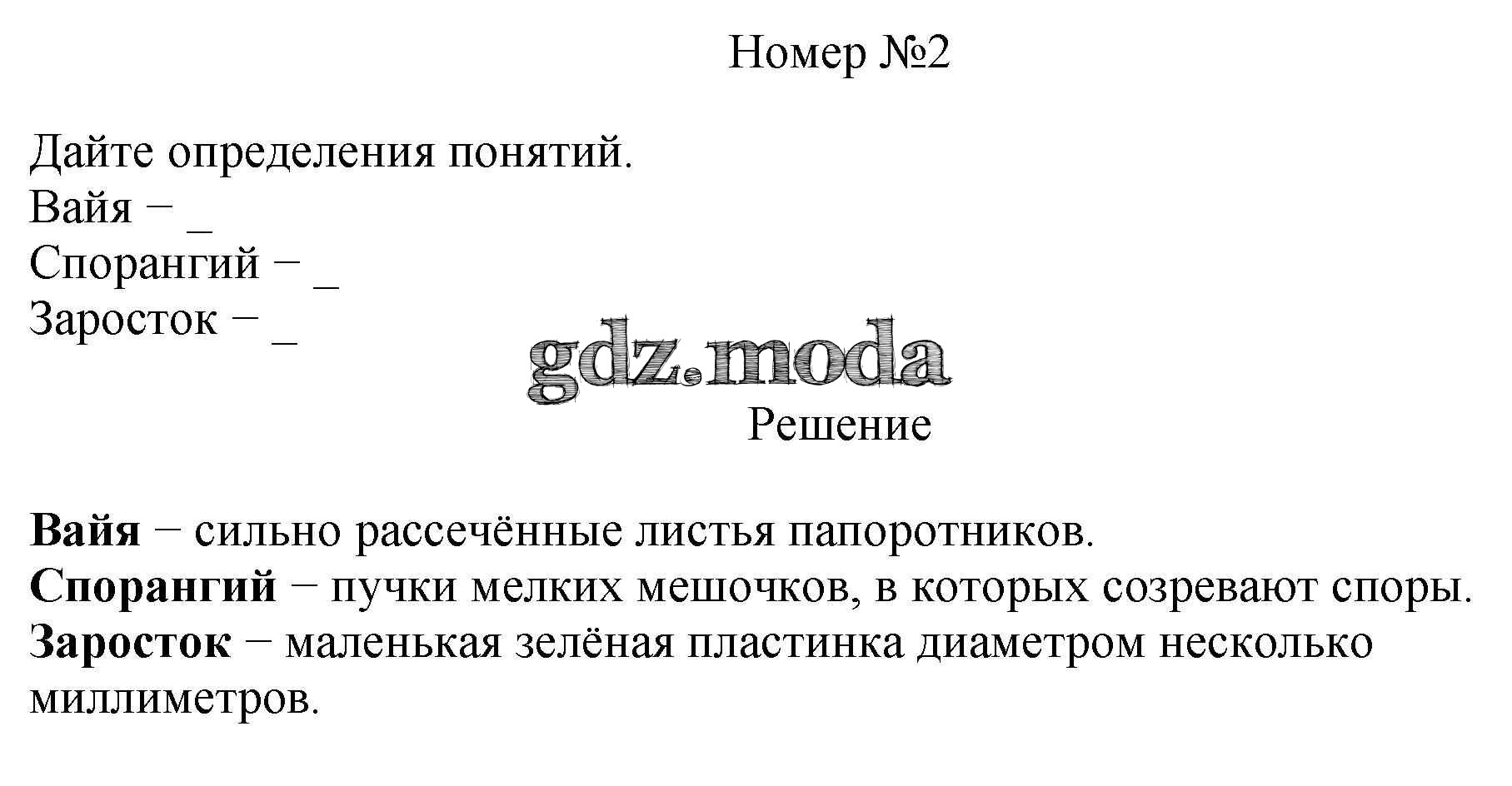 ГДЗ решение к заданию № 2 Биология 5 класс рабочая тетрадь Пасечник В.В. Просвещение, Просвещение 2015, 2020 ФГОС бесплатно на гдз.мода!