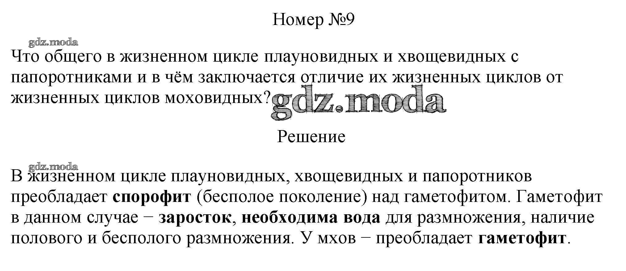 ГДЗ решение к заданию № 9 Биология 5 класс рабочая тетрадь Пасечник В.В. Просвещение, Просвещение 2015, 2020 ФГОС бесплатно на гдз.мода!