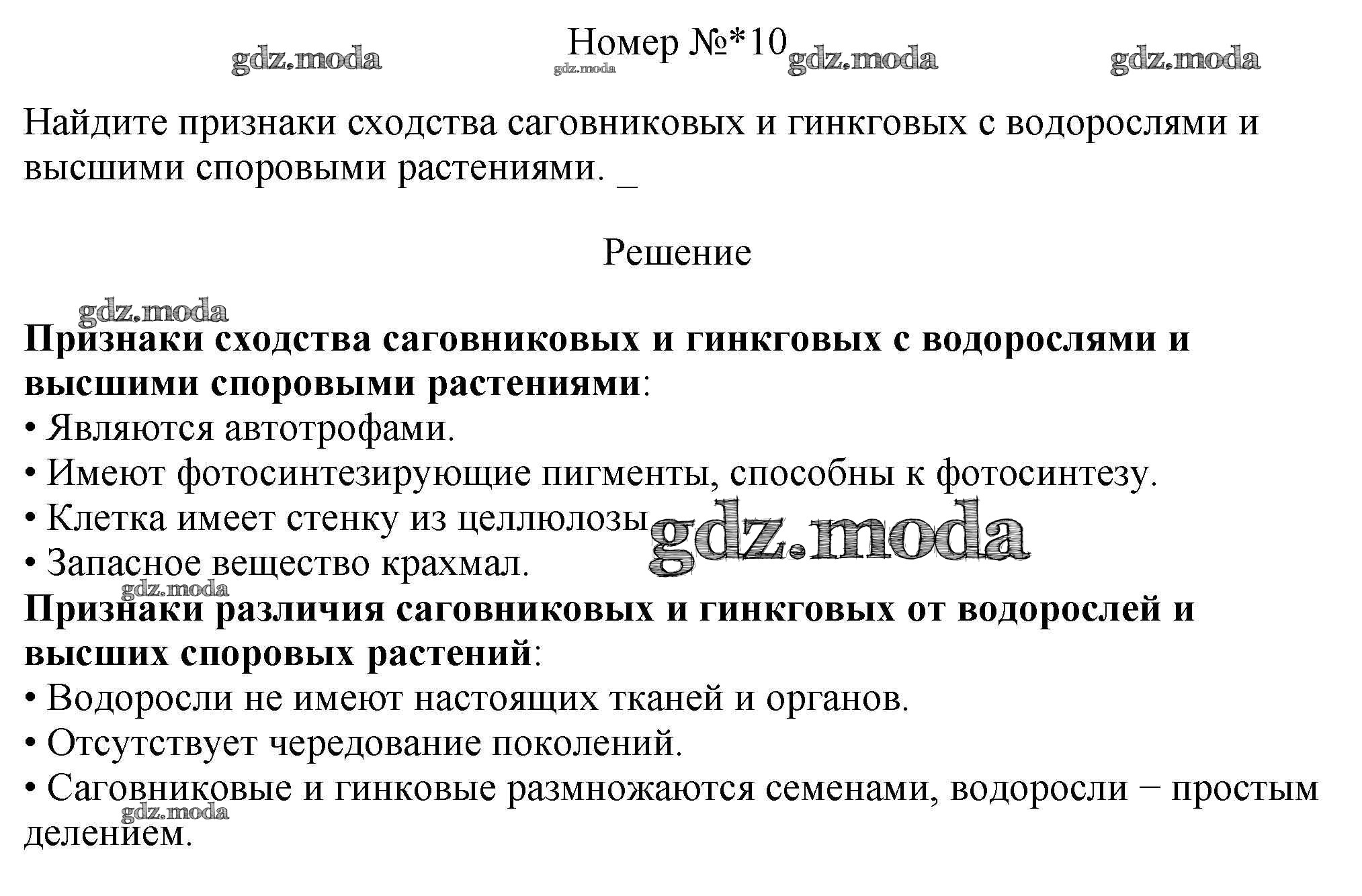 ГДЗ решение к заданию № 10 Биология 5 класс рабочая тетрадь Пасечник В.В. Просвещение, Просвещение 2015, 2020 ФГОС бесплатно на гдз.мода!