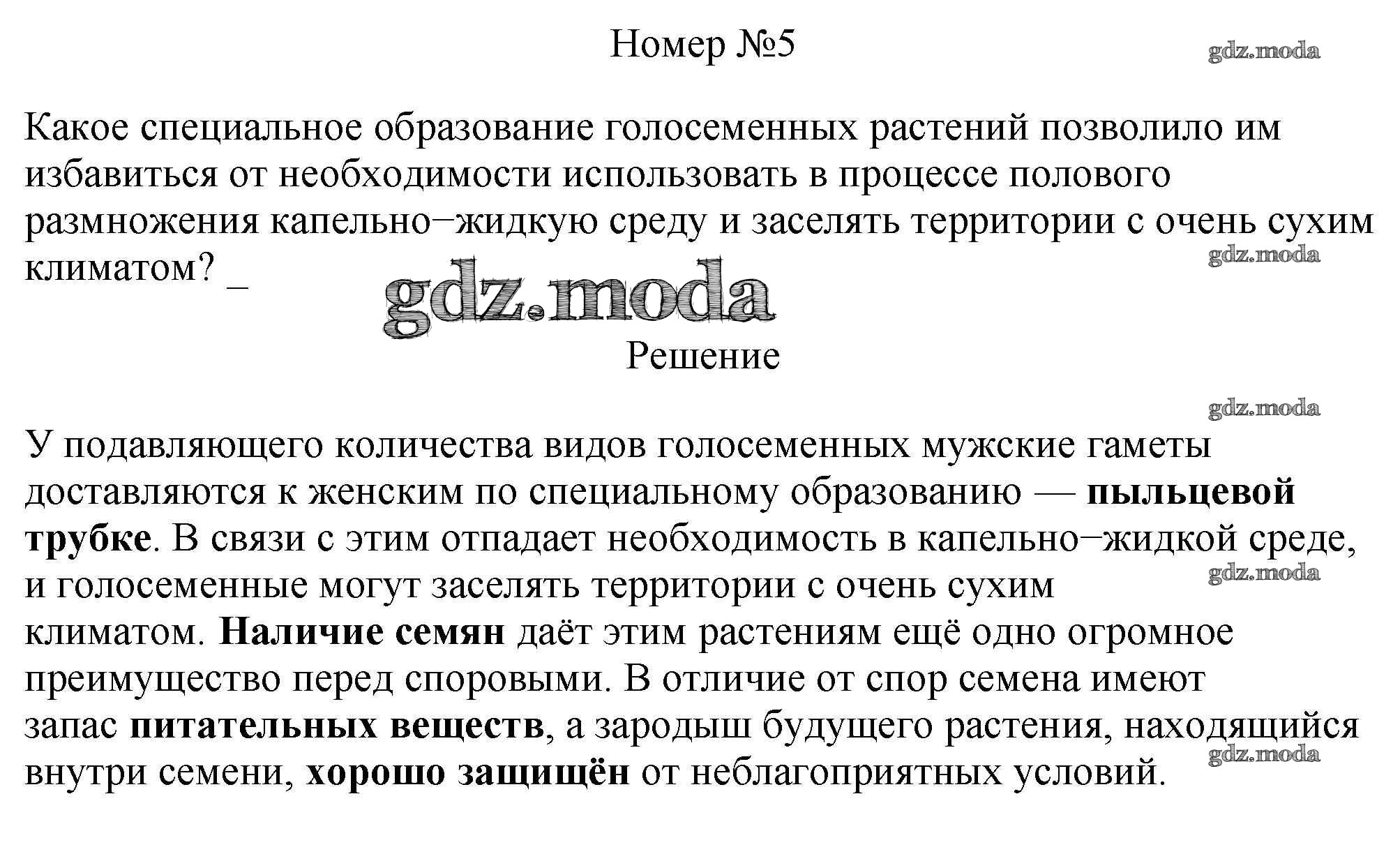 ГДЗ решение к заданию № 5 Биология 5 класс рабочая тетрадь Пасечник В.В. Просвещение, Просвещение 2015, 2020 ФГОС бесплатно на гдз.мода!