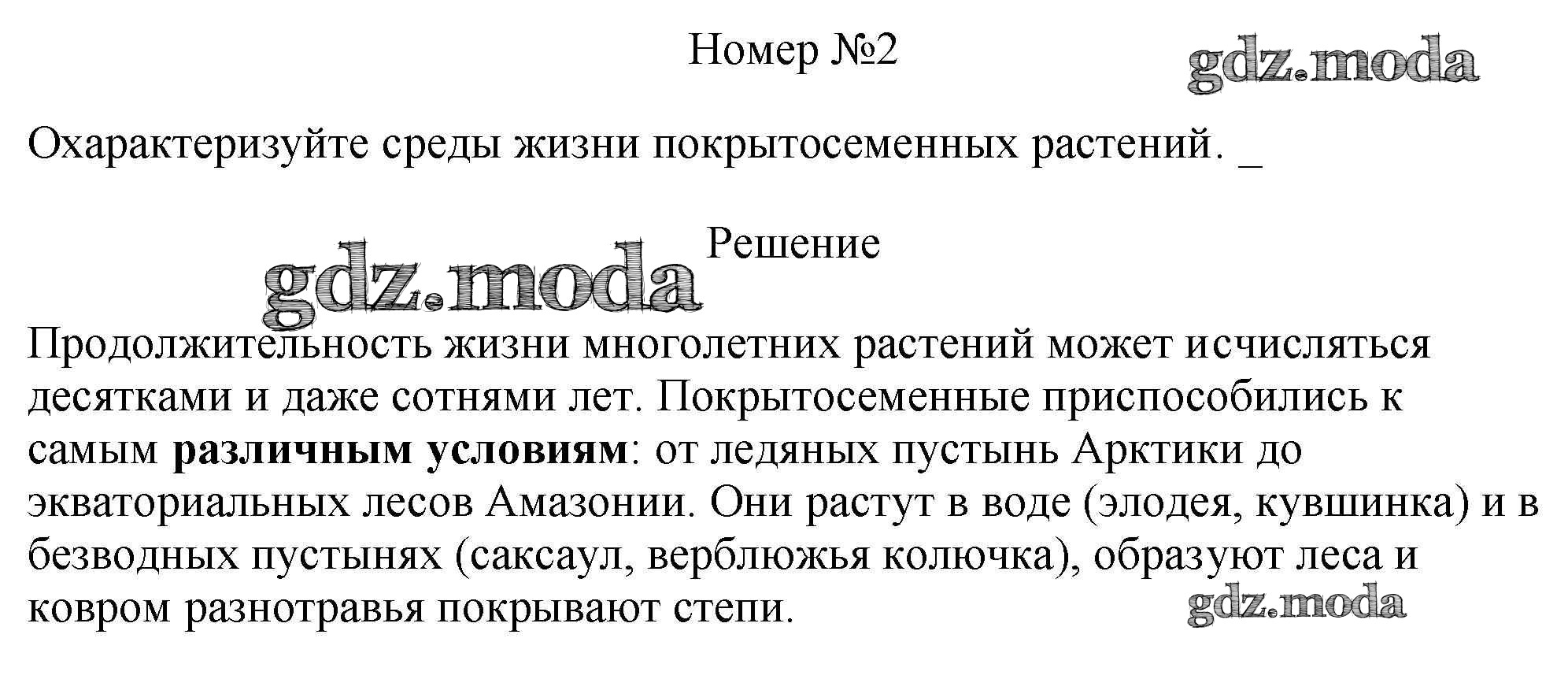 ГДЗ решение к заданию № 2 Биология 5 класс рабочая тетрадь Пасечник В.В. Просвещение, Просвещение 2015, 2020 ФГОС бесплатно на гдз.мода!