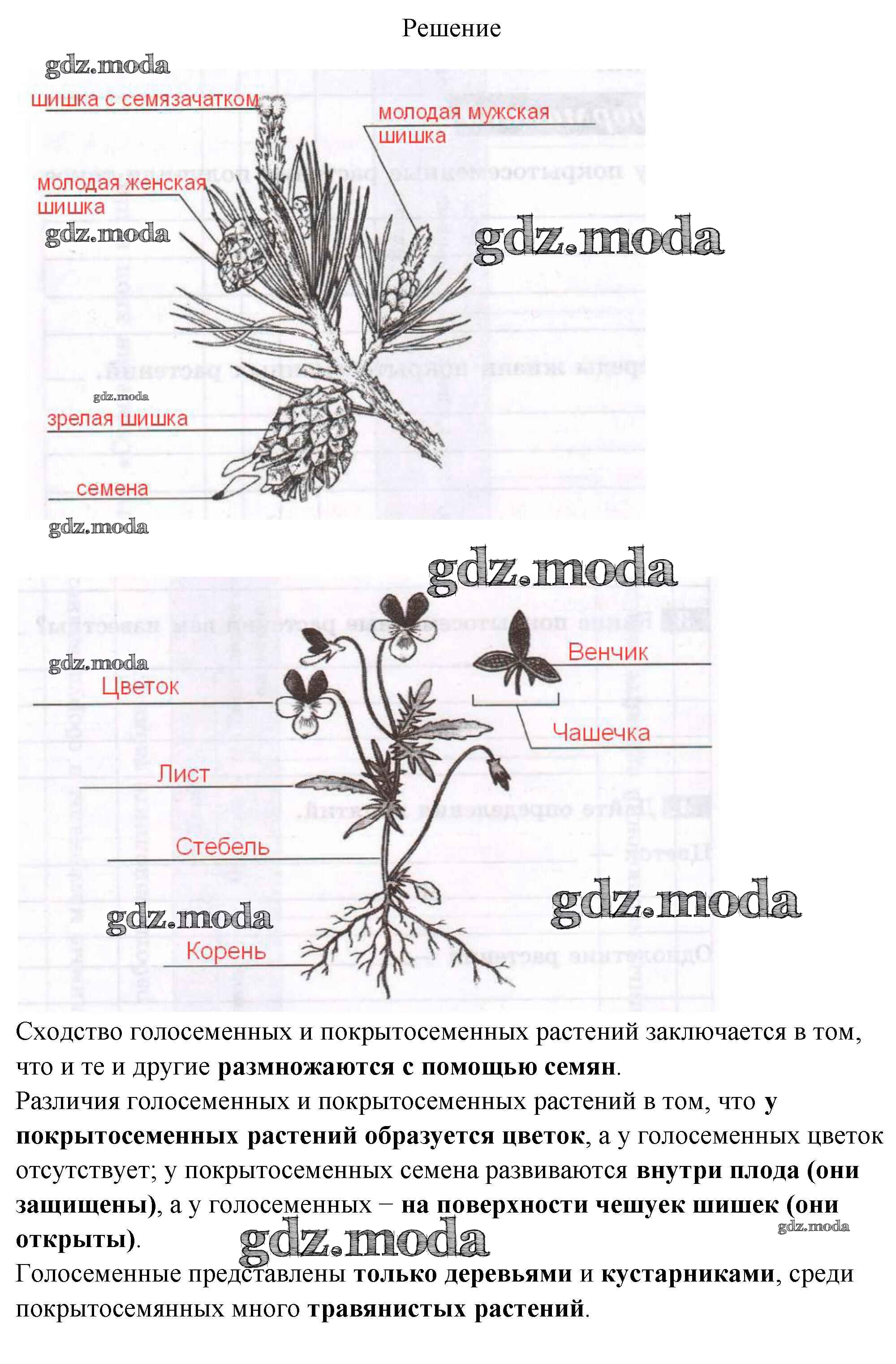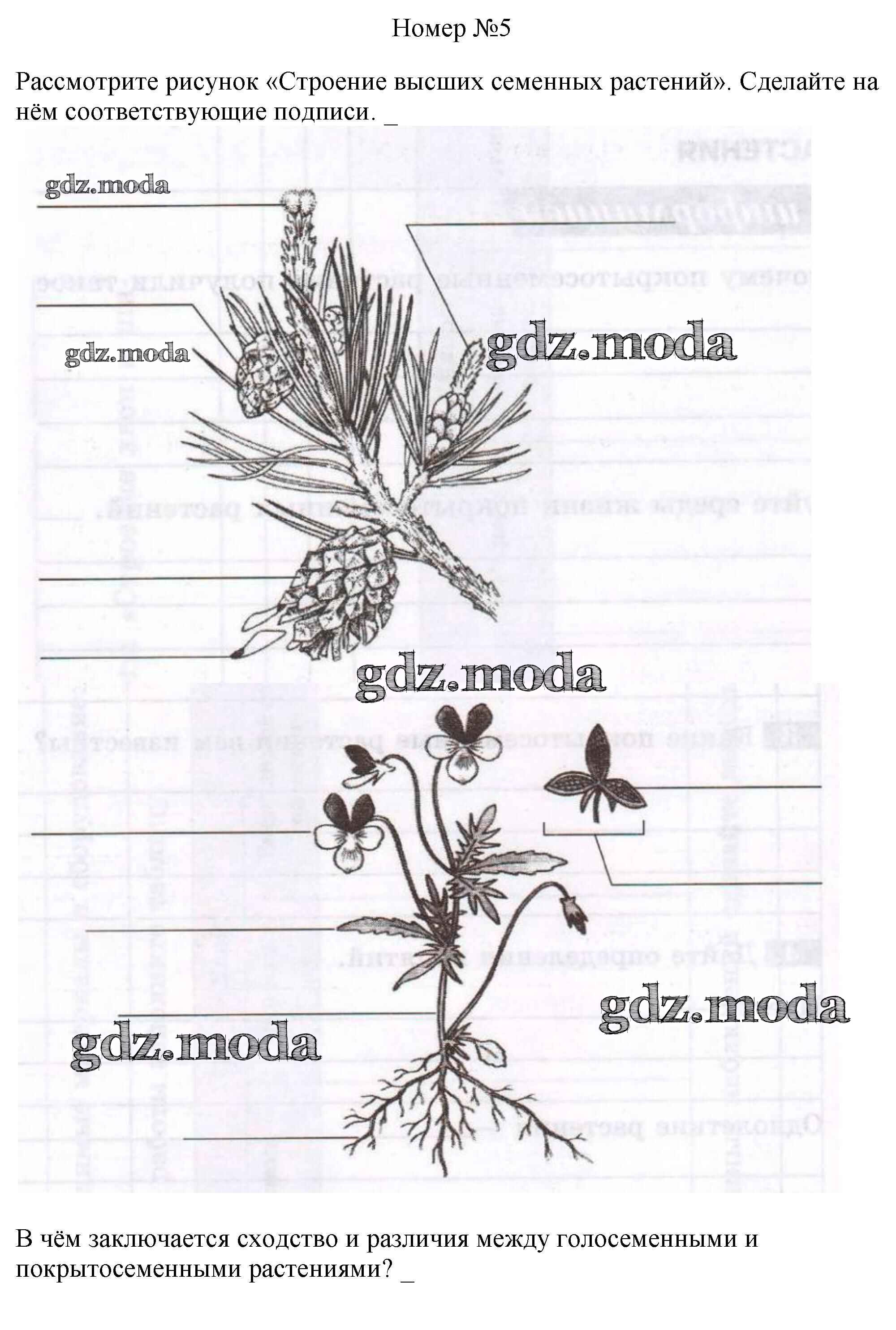 ГДЗ решение к заданию № 5 Биология 5 класс рабочая тетрадь Пасечник В.В. Просвещение, Просвещение 2015, 2020 ФГОС бесплатно на гдз.мода!