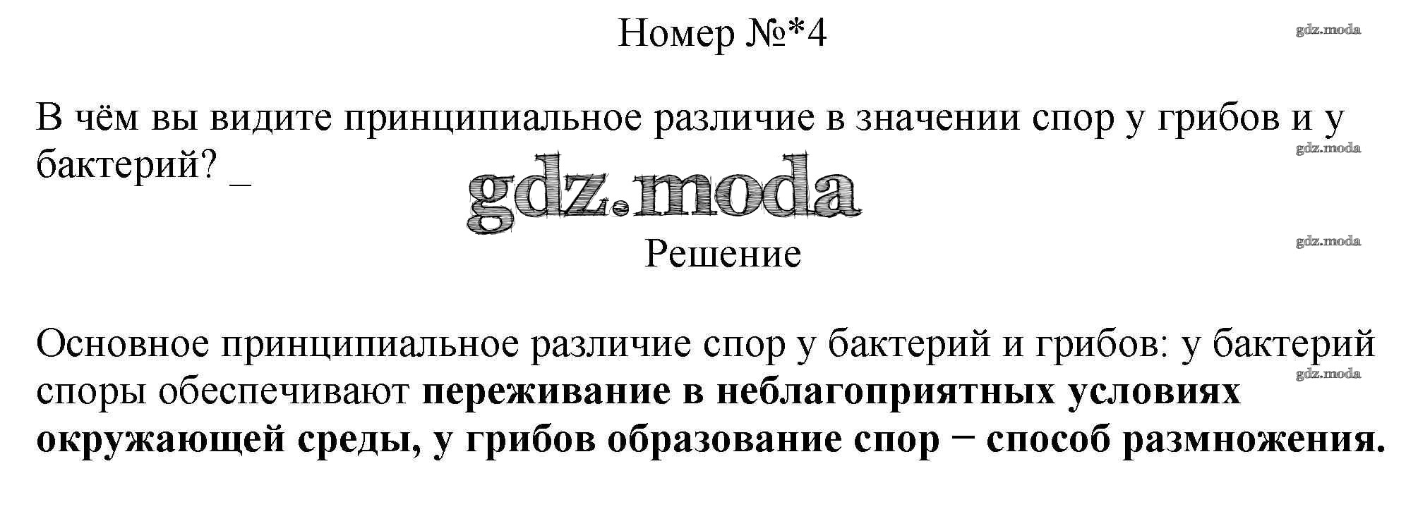 ГДЗ решение к заданию № 4 Биология 5 класс рабочая тетрадь Пасечник В.В. Просвещение, Просвещение 2015, 2020 ФГОС бесплатно на гдз.мода!