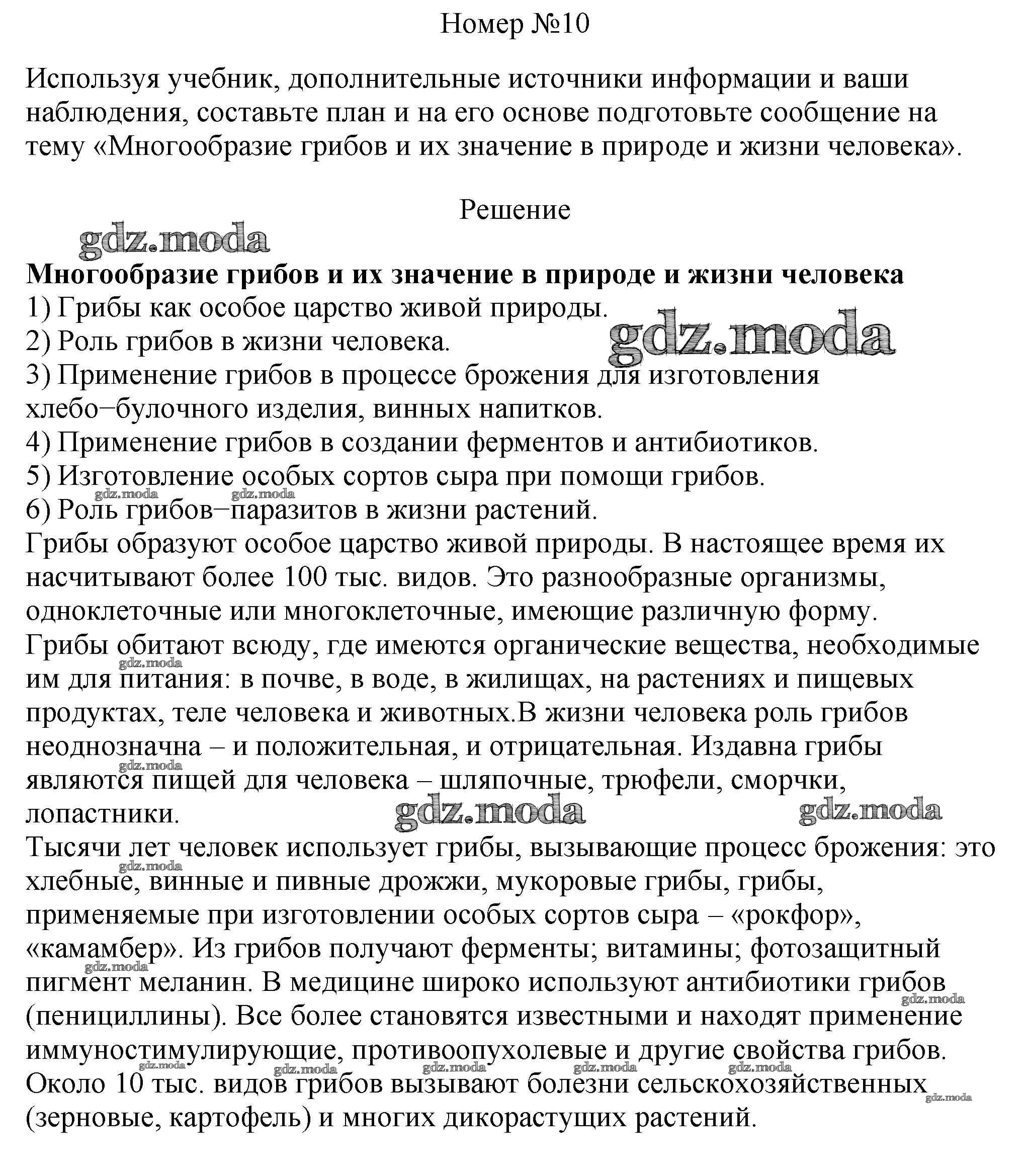 ГДЗ решение к заданию № 10 Биология 5 класс рабочая тетрадь Пасечник В.В. Просвещение, Просвещение 2015, 2020 ФГОС бесплатно на гдз.мода!