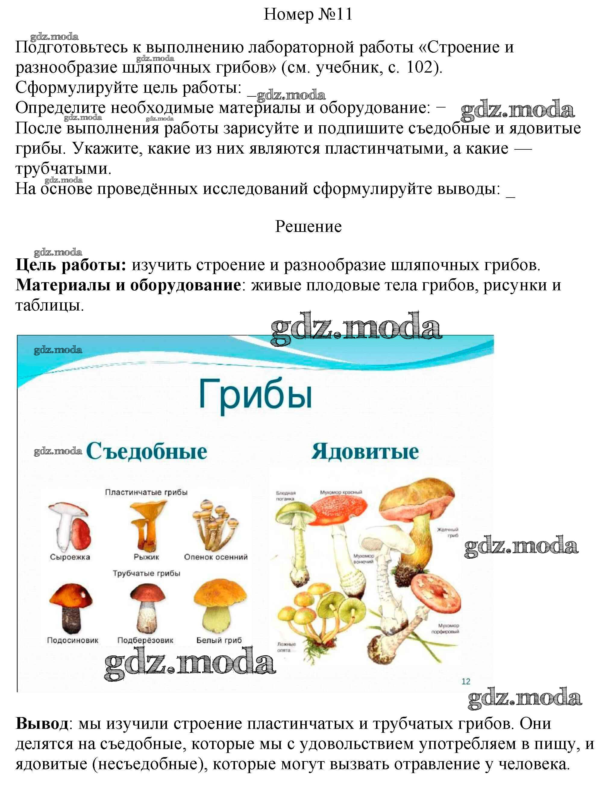 ГДЗ решение к заданию № 11 Биология 5 класс рабочая тетрадь Пасечник В.В. Просвещение, Просвещение 2015, 2020 ФГОС бесплатно на гдз.мода!