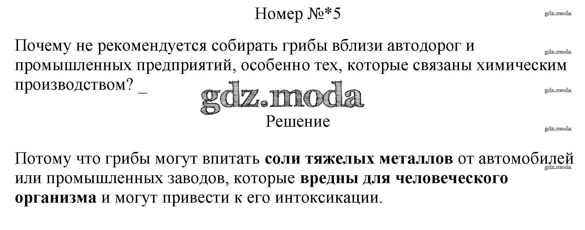 ГДЗ решение к заданию № 5 Биология 5 класс рабочая тетрадь Пасечник В.В. Просвещение, Просвещение 2015, 2020 ФГОС бесплатно на гдз.мода!