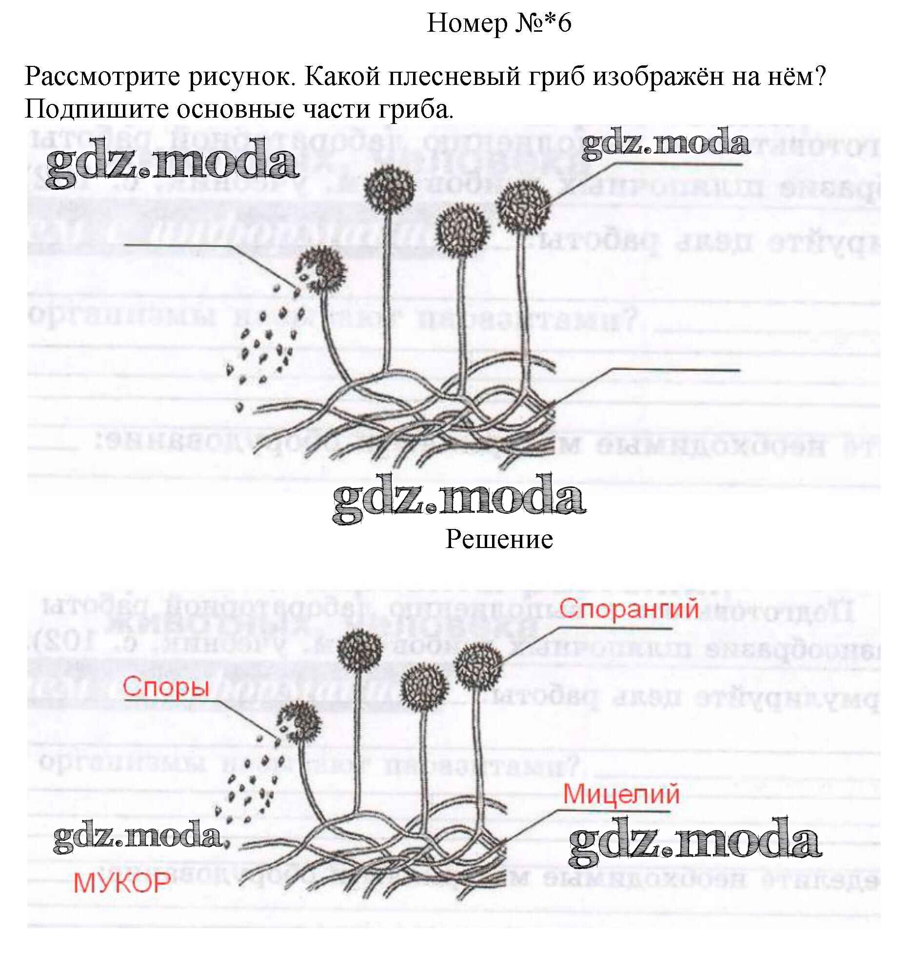 ГДЗ решение к заданию № 6 Биология 5 класс рабочая тетрадь Пасечник В.В. Просвещение, Просвещение 2015, 2020 ФГОС бесплатно на гдз.мода!
