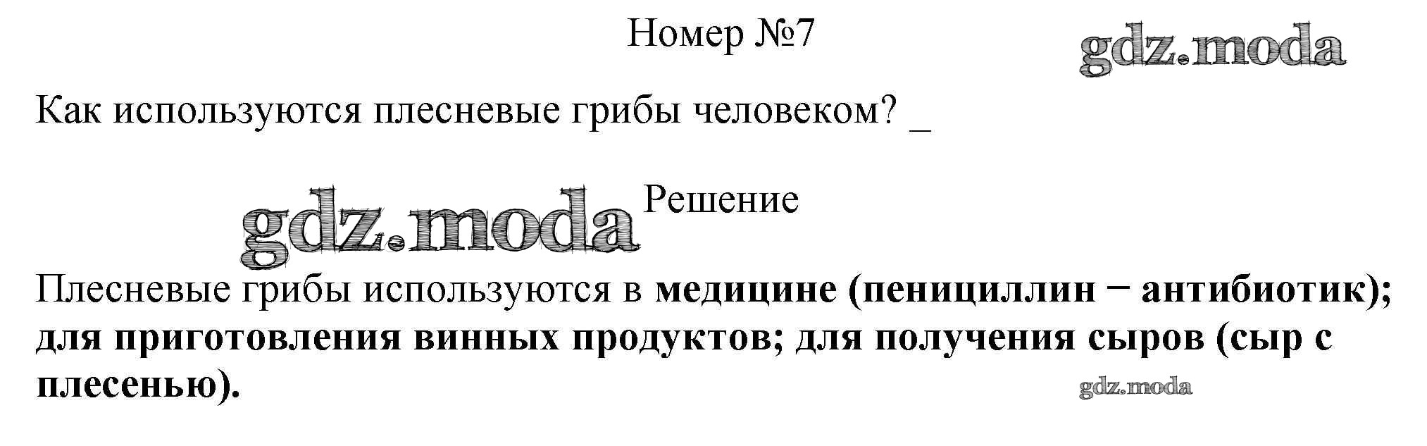 ГДЗ решение к заданию № 7 Биология 5 класс рабочая тетрадь Пасечник В.В. Просвещение, Просвещение 2015, 2020 ФГОС бесплатно на гдз.мода!