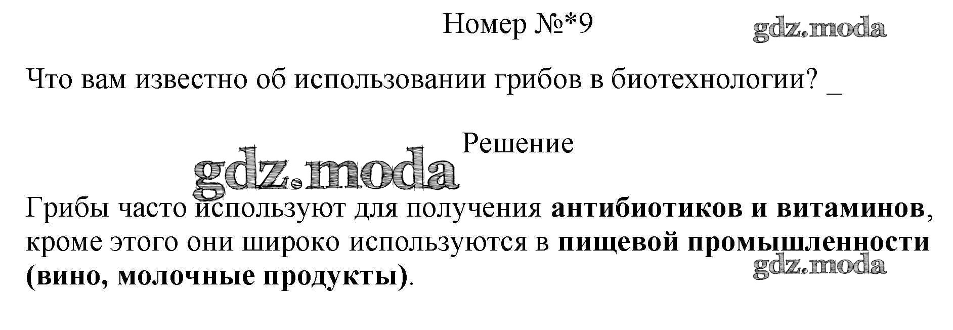 ГДЗ решение к заданию № 9 Биология 5 класс рабочая тетрадь Пасечник В.В. Просвещение, Просвещение 2015, 2020 ФГОС бесплатно на гдз.мода!