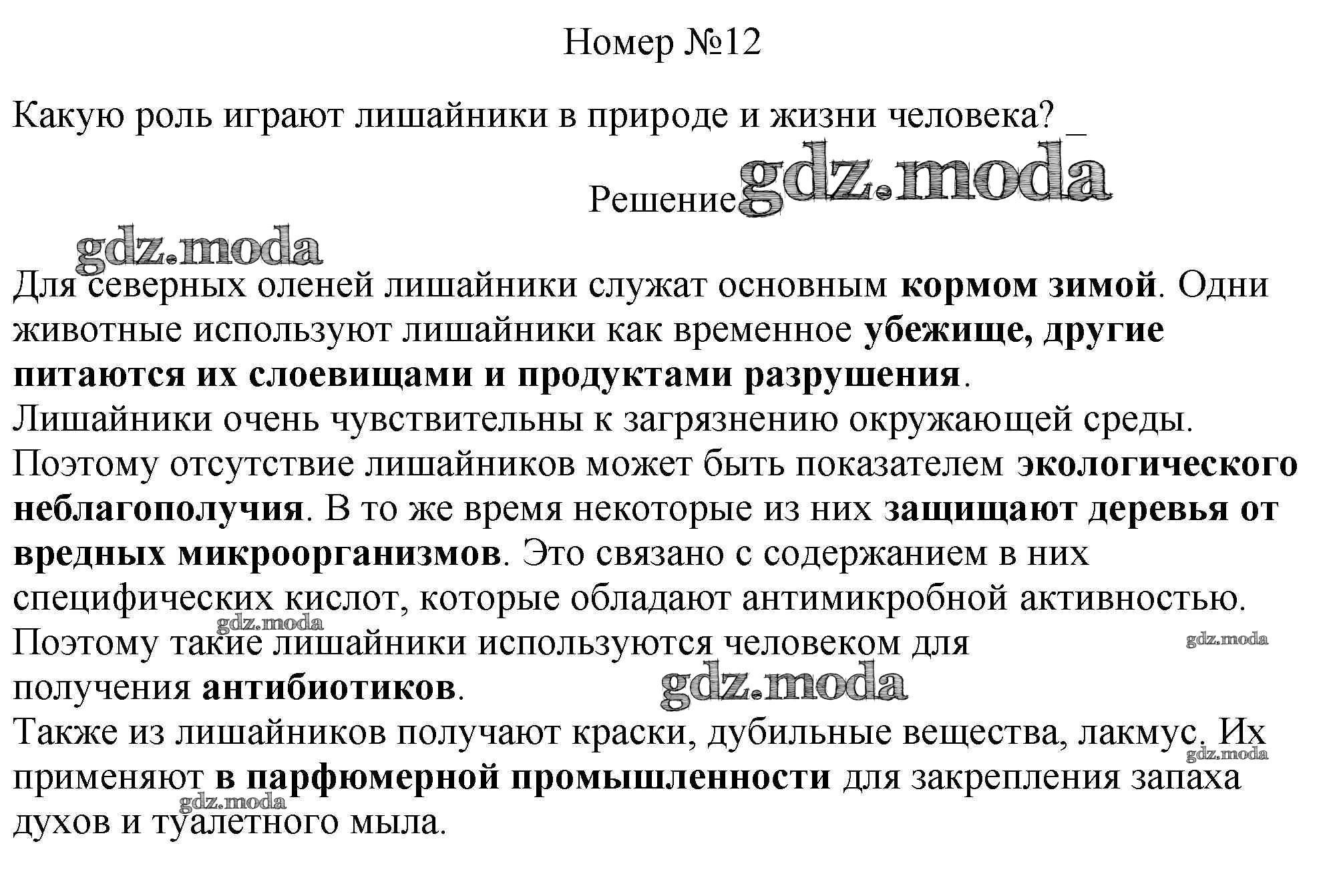 ГДЗ решение к заданию № 12 Биология 5 класс рабочая тетрадь Пасечник В.В. Просвещение, Просвещение 2015, 2020 ФГОС бесплатно на гдз.мода!
