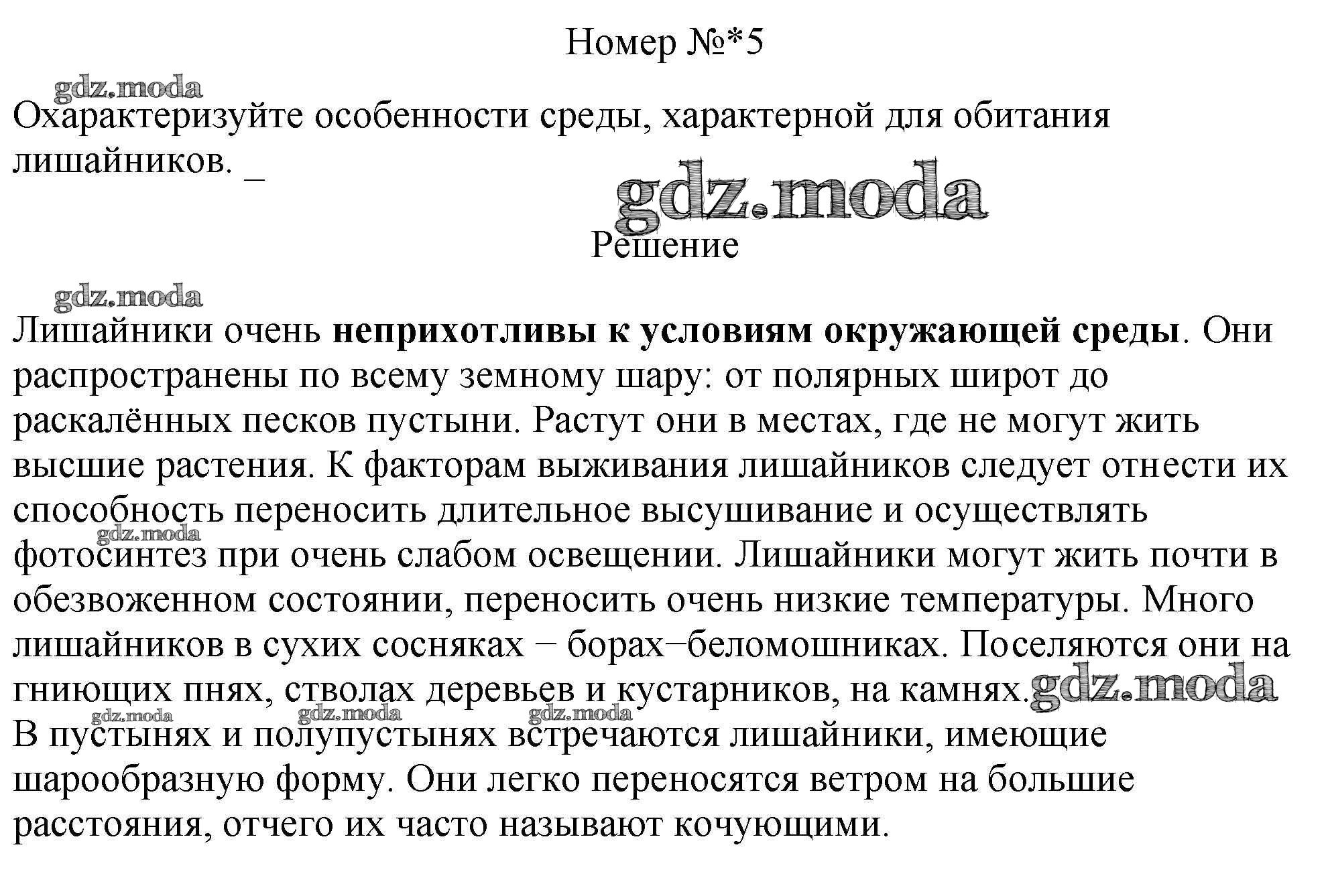 ОТВЕТ на задание № 5 Рабочая тетрадь по Биологии 5 класс Пасечник Линия жизни