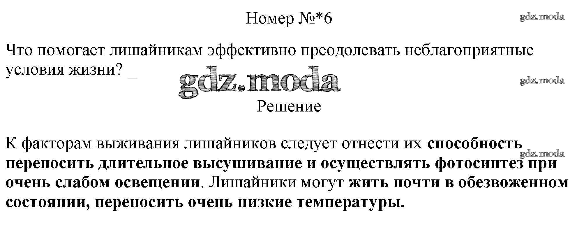 ГДЗ решение к заданию № 6 Биология 5 класс рабочая тетрадь Пасечник В.В. Просвещение, Просвещение 2015, 2020 ФГОС бесплатно на гдз.мода!