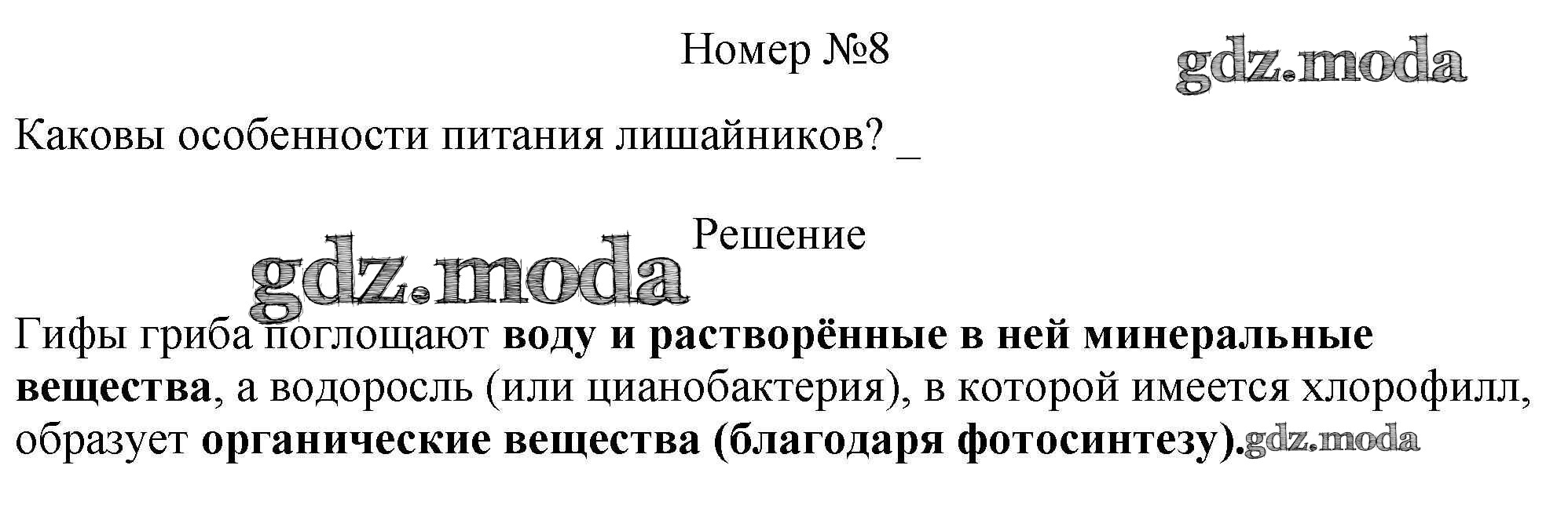 ГДЗ решение к заданию № 8 Биология 5 класс рабочая тетрадь Пасечник В.В. Просвещение, Просвещение 2015, 2020 ФГОС бесплатно на гдз.мода!