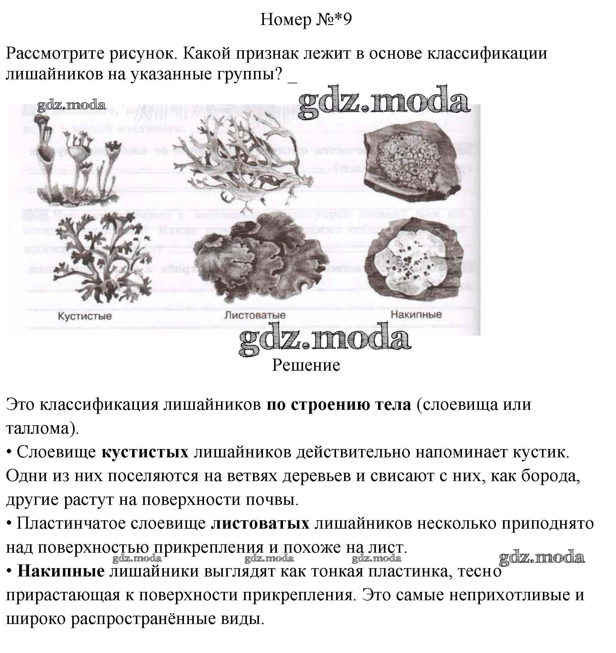 ГДЗ решение к заданию № 9 Биология 5 класс рабочая тетрадь Пасечник В.В. Просвещение, Просвещение 2015, 2020 ФГОС бесплатно на гдз.мода!