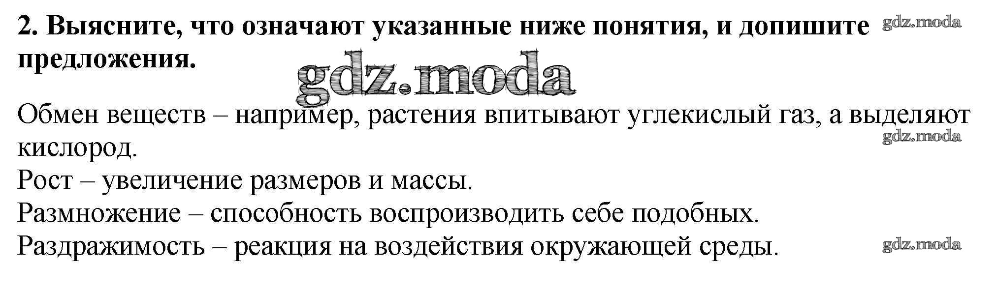 ОТВЕТ на задание № 2 Рабочая тетрадь по Биологии 5 класс Пасечник Линия жизни