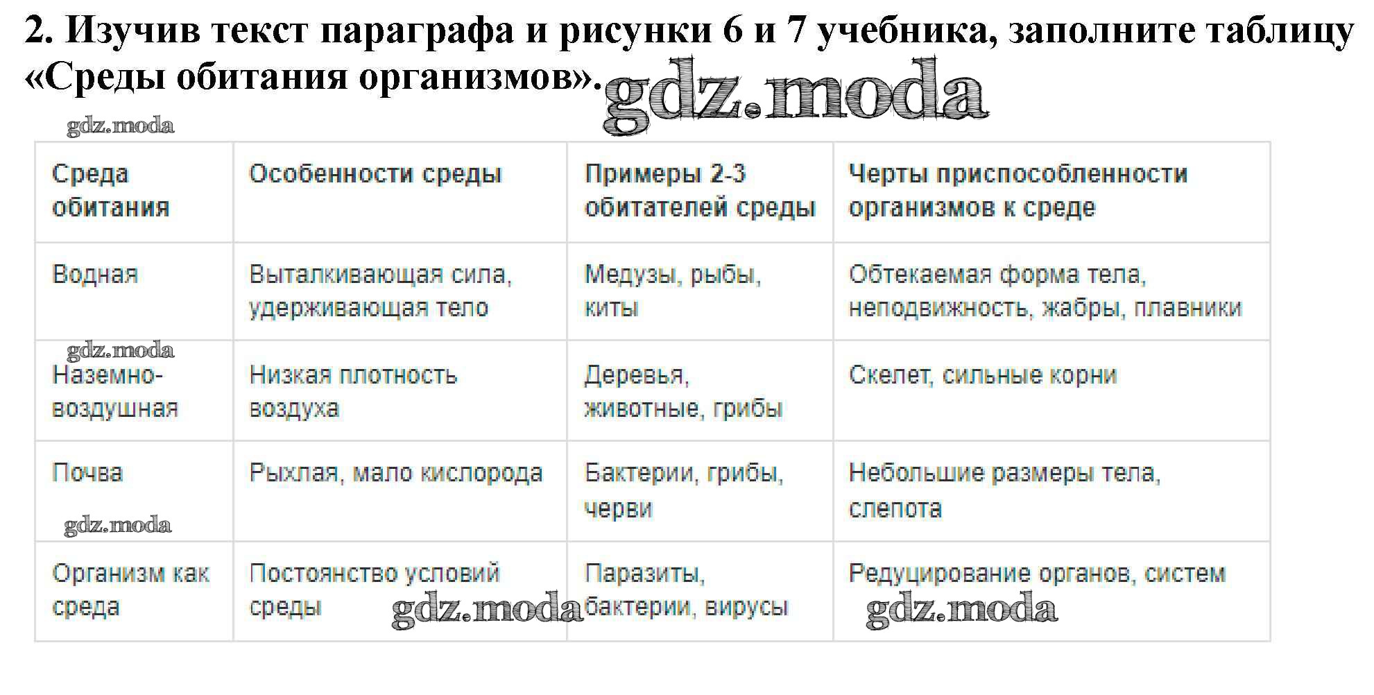 ОТВЕТ на задание № 2 Рабочая тетрадь по Биологии 5 класс Пасечник Линия жизни